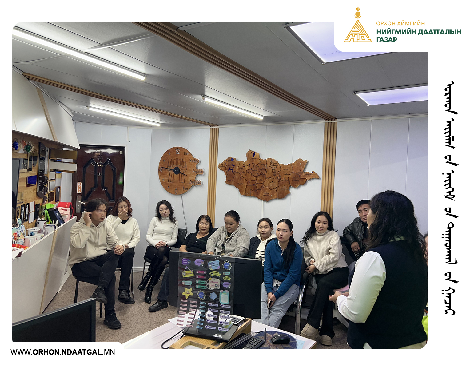 ”ИТГЭЛЦЛИЙН АЯН”-ны хүрээнд “Тод өнгө” ХХК-ний ажилчин, албан хаагчдын дунд сургалт зохион байгуулж, зөвлөгөө, мэдээлэл хүргэлээ.