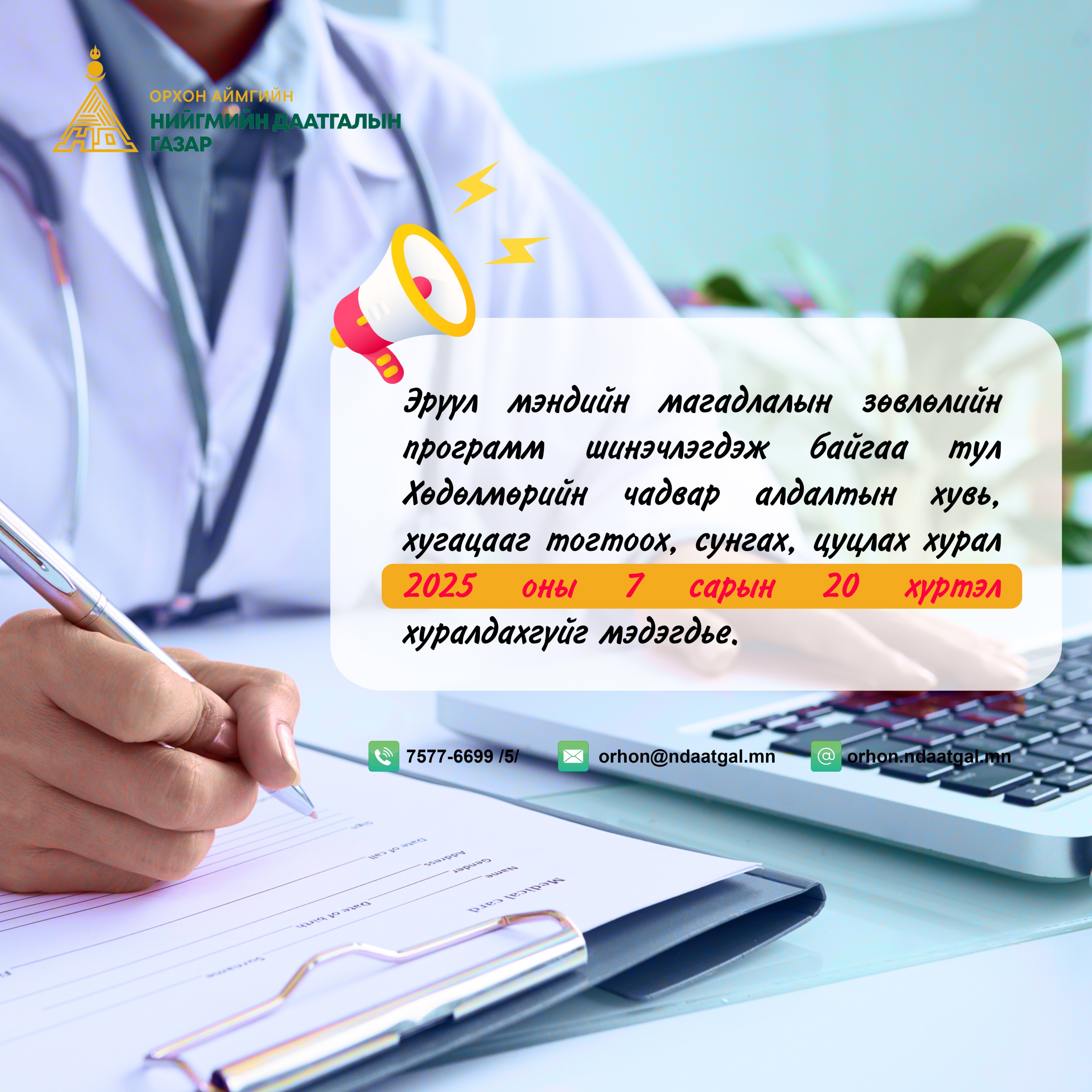 Эрүүл мэндийн магадлалын зөвлөлийн программ шинэчлэгдэж байгаа тул Хөдөлмөрийн чадвар алдалтын хувь, хугацааг тогтоох, сунгах, цуцлах хурал 2025 оны 7 сарын 20 хүртэл хуралдахгүйг мэдэгдье.