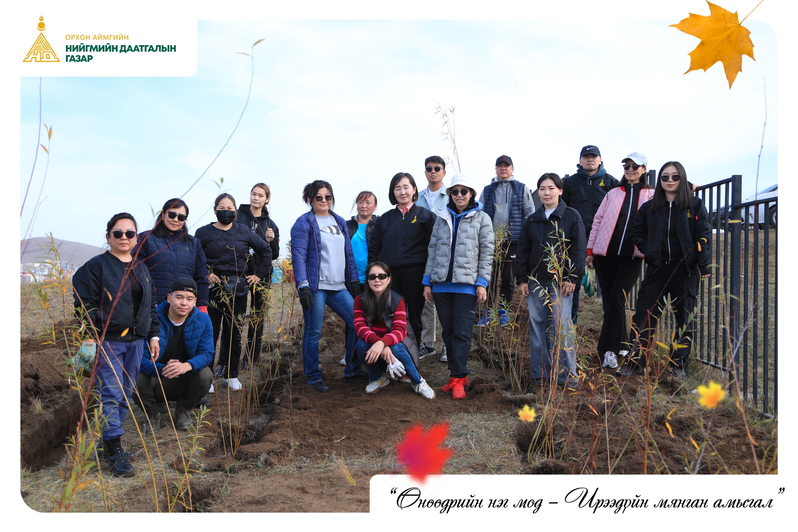Орхон аймгийн “Ногоон Эрдэнэт” хөтөлбөрийн хүрээнд цэцэрлэгт хүрээлэнгийн урд “Тарлан толгой” уулын хойд энгэрт манай байгууллагын хамт олон мод тарьлаа.
