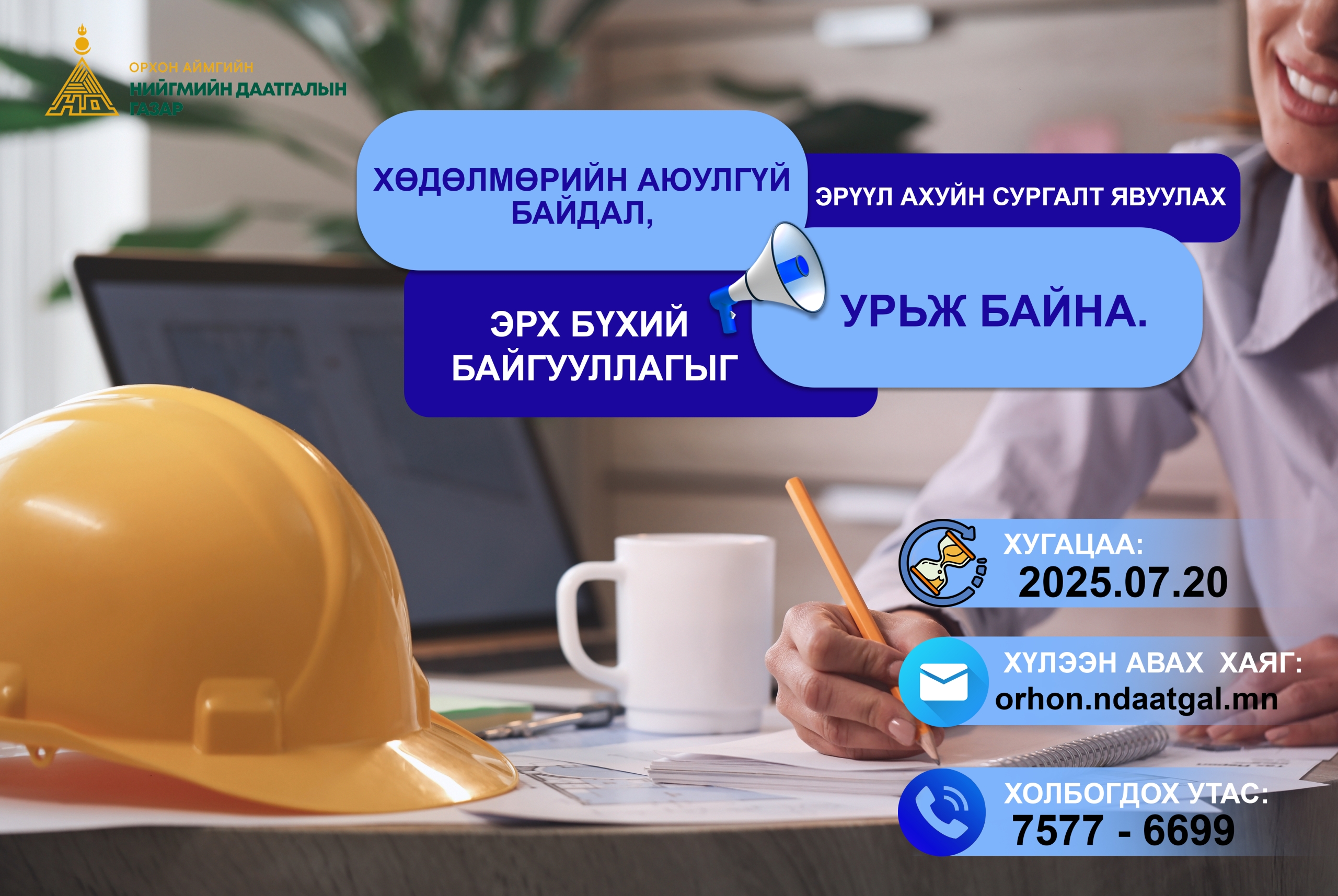 ХӨДӨЛМӨРИЙН АЮУЛГҮЙ БАЙДАЛ, ЭРҮҮЛ АХУЙН СУРГАЛТ ЯВУУЛАХ ЭРХ БҮХИЙ БАЙГУУЛЛАГЫГ УРЬЖ БАЙНА.