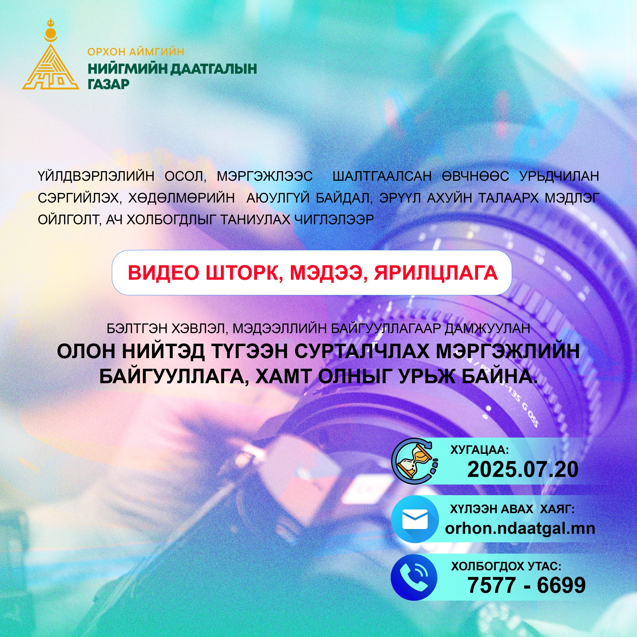 📨Дээрх материалыг бүрдүүлэн 2025 оны 07 дугаар сарын 20-ны дотор Orhon@ndaatgal.mn мэйл хаягаар илгээнэ үү.