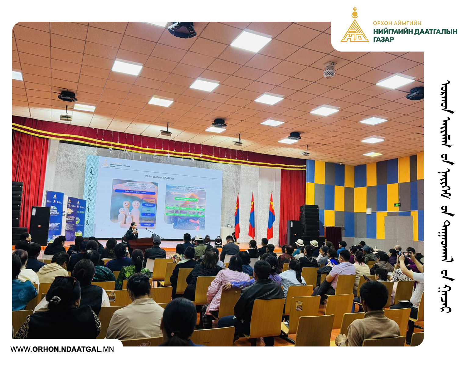✅Орхон аймгийн Жаргалант суманд зохион байгуулагдсан тус зөвлөгөөнд Орхон аймгийн Баян-Өндөр, Жаргалант суманд мал аж ахуй, газар тариалан эрхлэгчдийн 120 орчим төлөөлөл хамрагдаж, Нийгмийн даатгалын улсын байцаагч Н. Болортуяа, Р. Эрдэнэтуяа, О. Чойенмаа, сургалт сурталчилгааны мэргэжилтэн Д. Хонгорзул нар даатгуулагчдад сургалт, мэдээлэл, зөвлөгөө өгч ажиллалаа.