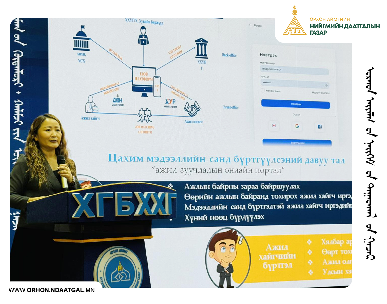 “Хамтын хариуцлага-Итгэлтэй ирээдүй” сургалтын хөтөлбөрийн дагуу урилгаар Орхон аймгийн Хөдөлмөр халамж үйлчилгээний газрын халамжийн мэргэжилтэн М.Мягмарсүрэн Хөдөлмөр эрхлэлтийг дэмжих үйл ажиллагаа сэдвээр сургалт орлоо.