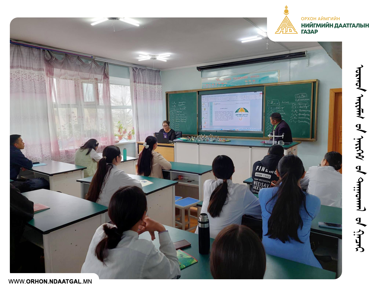 НүүрМэдээУлсын тэргүүний Жаргалант сумын Ерөнхий боловсролын сургуулийн 12 дугаар ангийн сурагчдад “Нийгмийн даатгалын багц хууль” сэдвээр сургалт зохион байгуулав.