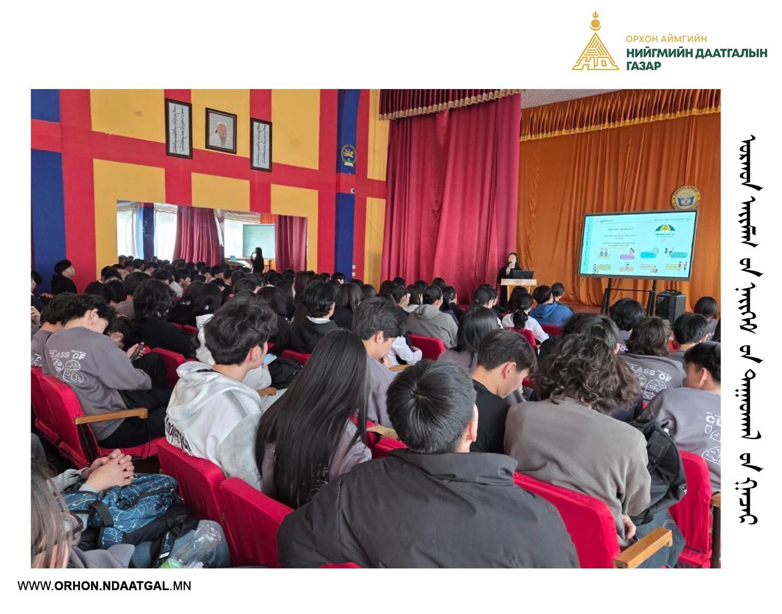Орхон аймгийн Ерөнхий боловсролын 5 дугаар сургуулийн ахлах ангийн сурагчдад ‘Даатгалтай ирээдүй’ сэдвээр сургалт зохион байгуулж, нийгмийн даатгалын ач холбогдлыг сурталчлан таниулж ажиллалаа.