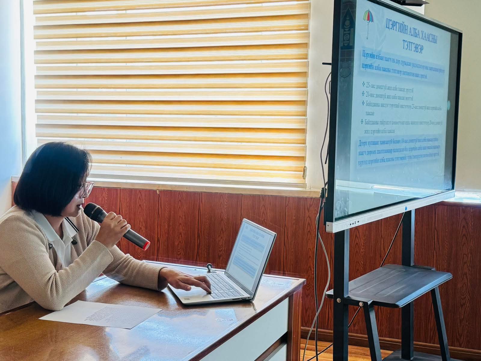 ✅Сургалтыг Тэтгэмжийн хяналтын улсын байцаагч Д.Энхмөнх, Сургалт, сурталчилгаа хариуцсан мэргэжилтэн Д.Хонгорзул нар зохион байгууллаа.