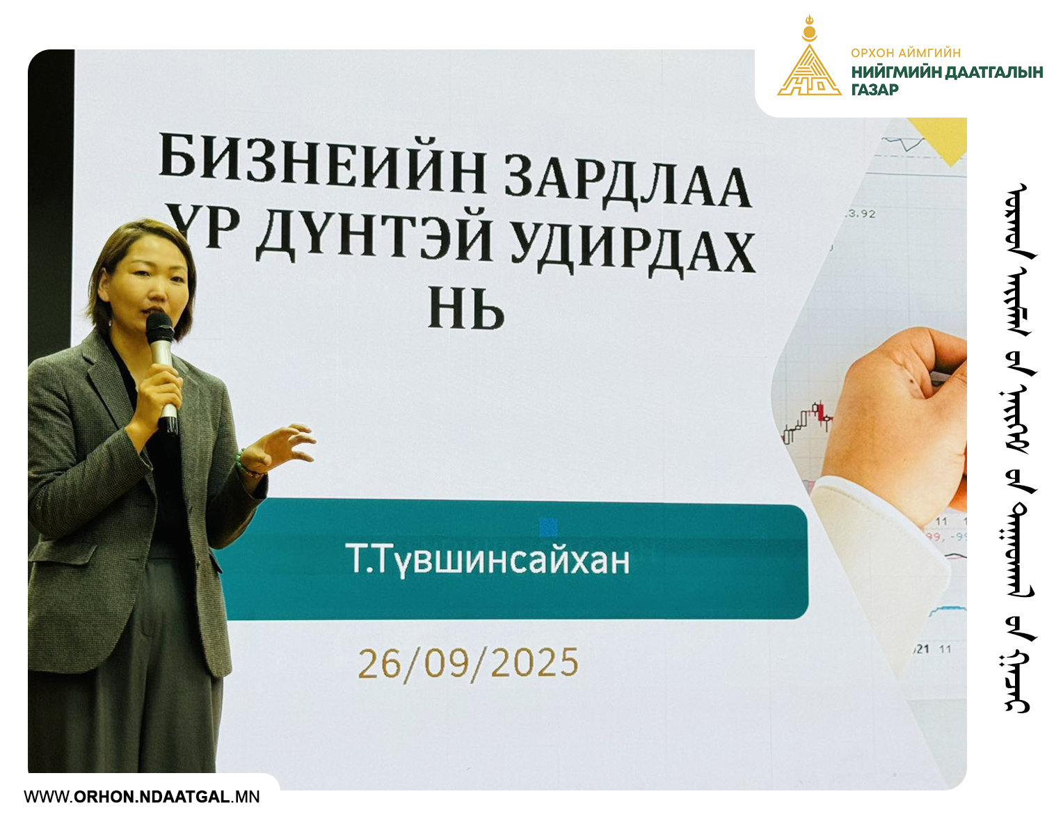 “Хамтын хариуцлага-Итгэлтэй ирээдүй” сургалтын хөтөлбөрийн дагуу урилгаар “Хөгжлийн төлөө бизнес эмэгтэйчүүд НҮТББ”-ын гүйцэтгэх захирал Т.Түвшинсайхан Бизнесийн зардлаа үр дүнтэй удирдах нь сэдвээр сургалт орлоо.