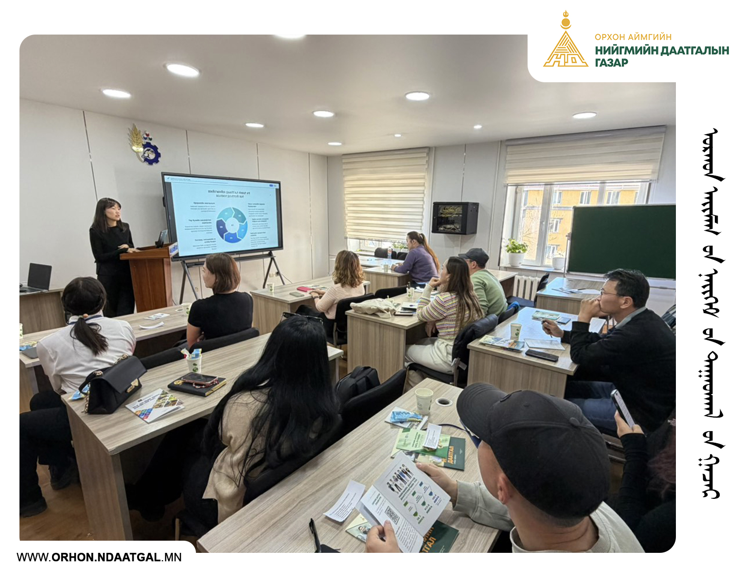 ✅Орхон аймгийн Нийгмийн даатгалын газрын Сургалт, сурталчилгаа хариуцсан мэргэжилтэн Н.Хулан Орхон аймгийн “Хүнс хөдөө аж ахуйн газар”-тай хамтран ажил олгогч, жижиг дунд бизнес эрхлэгч нарт “Нийгмийн даатгалын ач холбогдол, цахим үйлчилгээ” сэдвээр мэдээлэл хүргэн ажиллалаа.