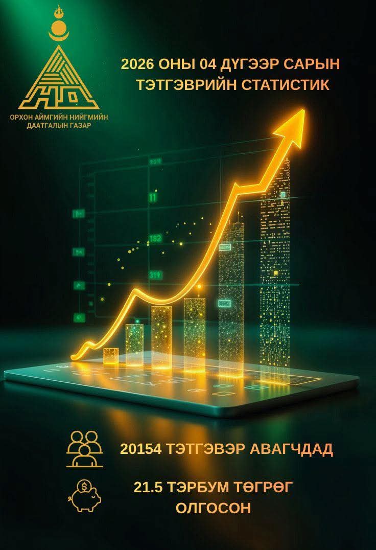 2026 оны 04 дугаар сарын 01-ний өдөр аймгийн хэмжээнд нийт 20154 тэтгэвэр авагчдад 21.5 тэрбум төгрөгийн тэтгэврийг бүрэн олголоо.